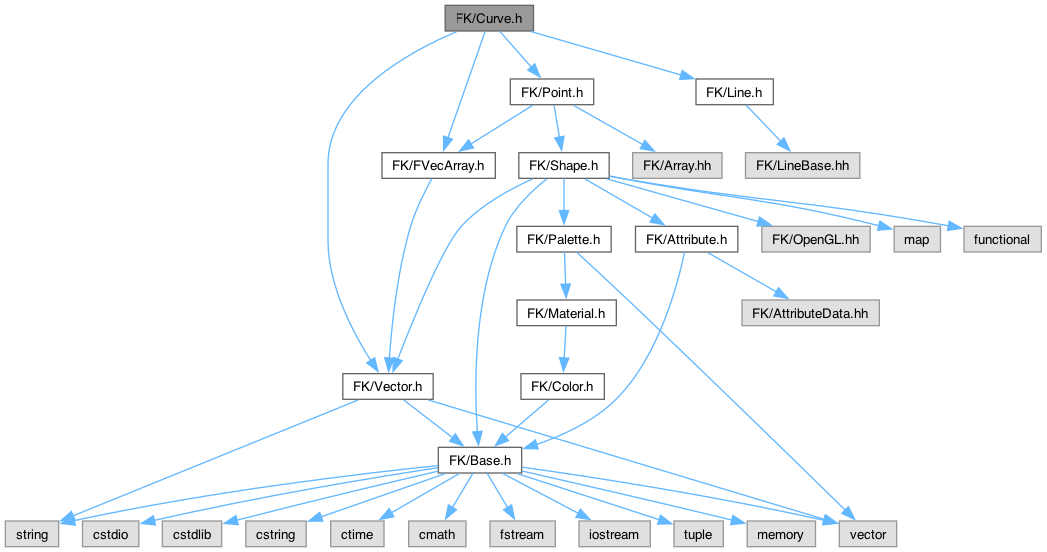 Curve.h の依存先関係図: