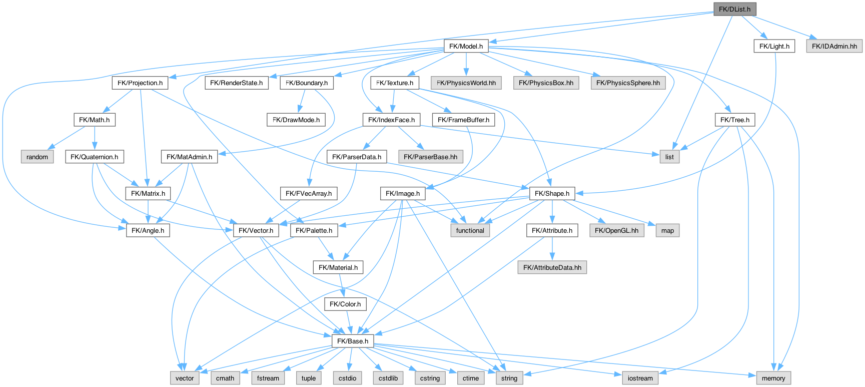 DList.h の依存先関係図: