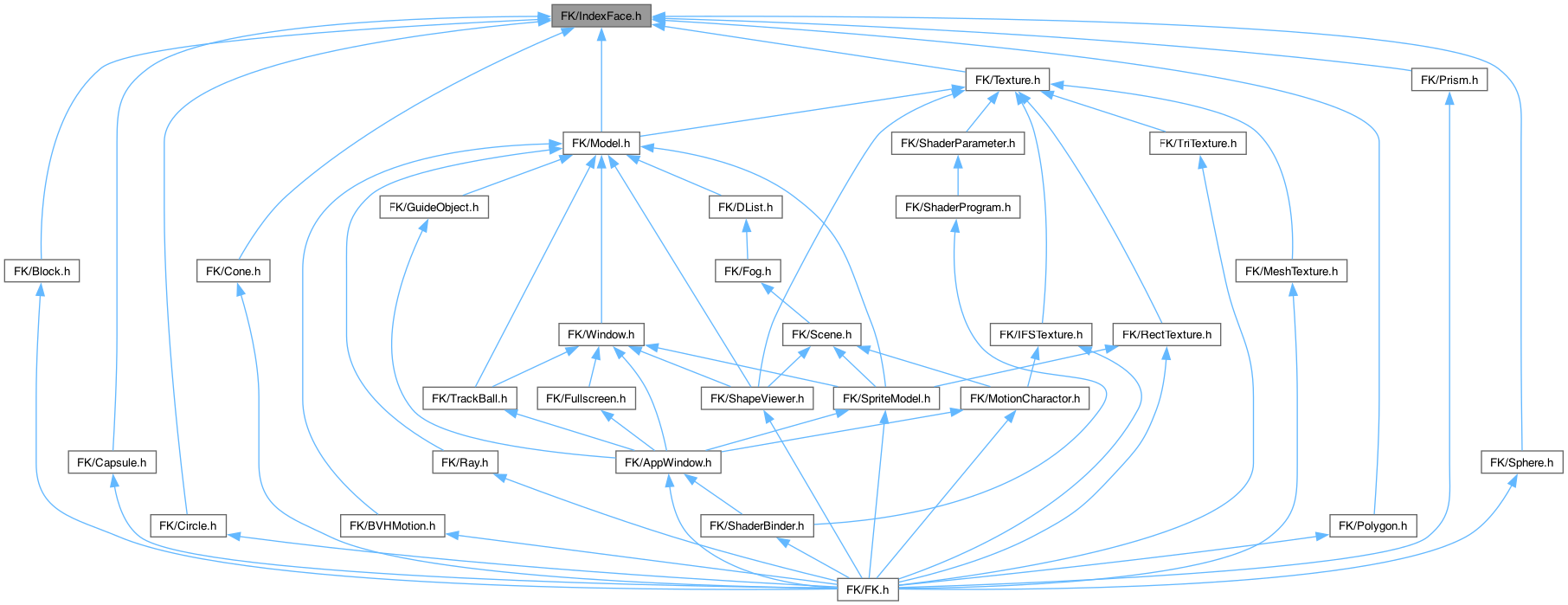 IndexFace.h の依存先関係図: