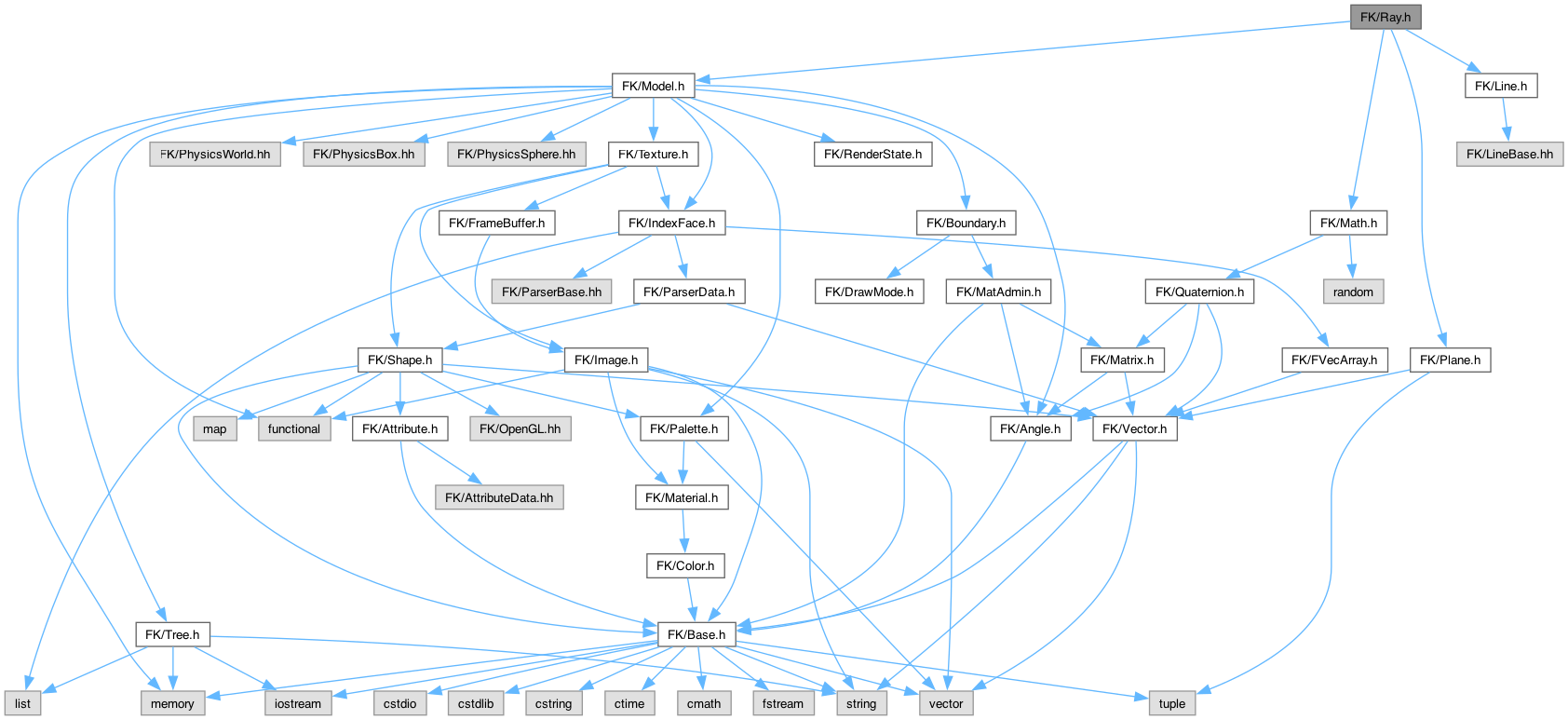 Ray.h の依存先関係図: