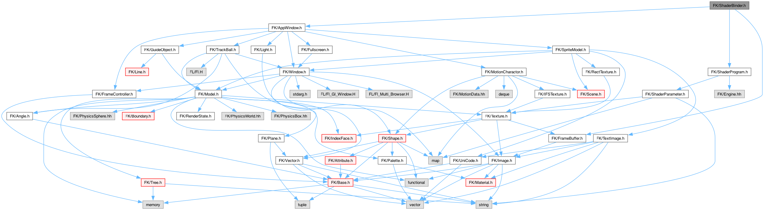 ShaderBinder.h の依存先関係図: