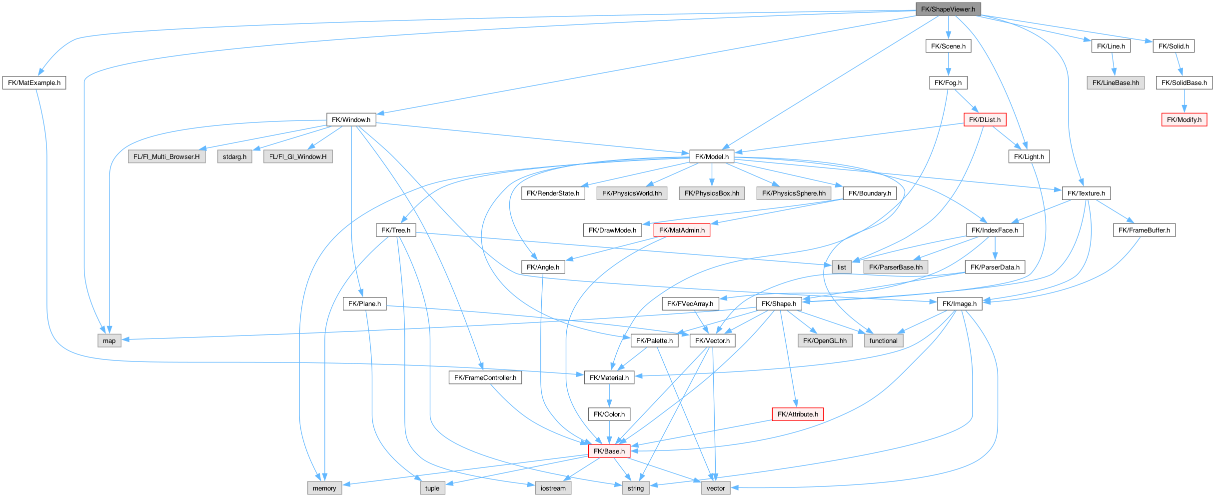 ShapeViewer.h の依存先関係図: