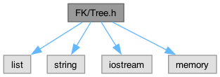 Tree.h の依存先関係図: